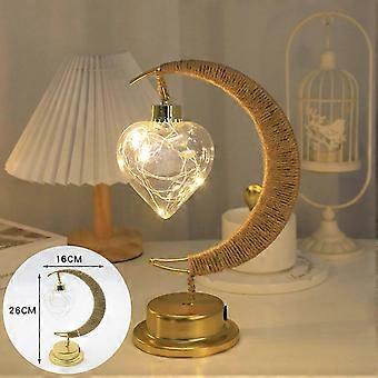 Material: metal + hemp rope, Product size: 26 * 10cm, power on USB, or put 3 AA batteries - not included Romantic Moon LampThis enchanted lunar lamp has a unique shape and looks very stylish and retro when lit. The star lampshade is woven in rattan for an added decorative sense. Not only can be used as a table lamp to create a warm atmosphere, but also can be used as Ramadan decorations, Christmas decorations and gifts. Caring EyesThe hanging Led Moon Lamp Night Light has aSoft and non-flickering design, the lighting is friendly to your eyes, helping you avoid eye fatigue caused by flickering light and harsh glare. Warm diffused light creates a uniform non won't hurt your eyes. Cozy light help soothe you and your kids to sleep as well. Ramadan inspired DesignImmerse yourself in the festive spirit with our LED moon table lamp. Featuring moon, star, round ball, and other decorative elements, it embodies the essence of Ramadan and religious symbolism, adding a touch of authenticity and beauty to your celebrations. Versatile for Various OccasionsSmall lamps for bedroom Ideal for celebrating Ramadan, Christmas, Easter, New Year, birthdays, and other festive occasions, our decorative lunar lamps joy and comfort. It complements the festive atmosphere and is an excellent addition to your Ramadan parties. Perfect GiftShare happiness and blessings at your Ramadan gatherings with our moon LED bedside lamp. It serves as a perfect gift for friends, neighbors, and family members, spreading joy and creating unforgettable memories.