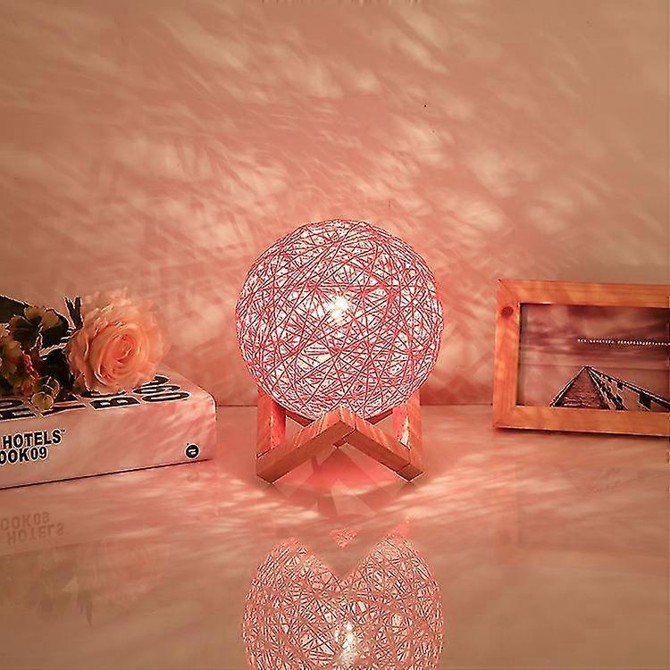 Bedside Lamp, Creative Wooden-based Night Light, Used To Decorate The Bedroom, Led Light With Wooden Bracket, Modern Rattan Usb Connector, Color: Pink