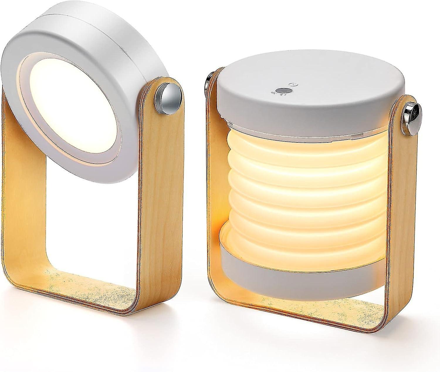 Multifunctional Folding Table Lamp: This retractable folding table lamp is perfect as a bedside lamp, desk lamp, table lamp, wall sconce, reading light or camping light. Perfect for bedrooms, living rooms, study rooms, bedside tables, and can also be carried around for camping, hiking and other outdoor activities. 360 Degree Adjustable Eye Light: This night light has 3 brightness levels (soft, medium and bright). It is perfect for rest and relaxation, perfect for bedroom, nursery, children's night light, sofa bed. Portable and safe design: Built-in 1200mAh rechargeable touch-activated table lamp battery (2 hours charging via USB port) will meet your needs - up to 14 hours (different brightness, different use time). Enjoy the convenience of a portable handle when you're at home, in the office, or even camping or picnicking. Easy to use and stylish design: One-touch control to turn on/off and control brightness from low to high, 3 adjustable brightness levels. European elegant design, warm white lamp, wooden handle. Product dimensions: 19.4cm x 14.2cm x 3.7cm. Shipping quantity: 2 pieces.