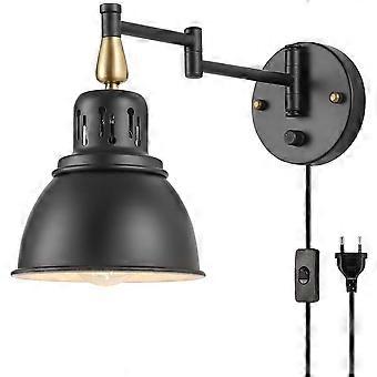 Industrial Wall Light with Swivel Arm, Switch, Plug, E27, Black, 1 Piece