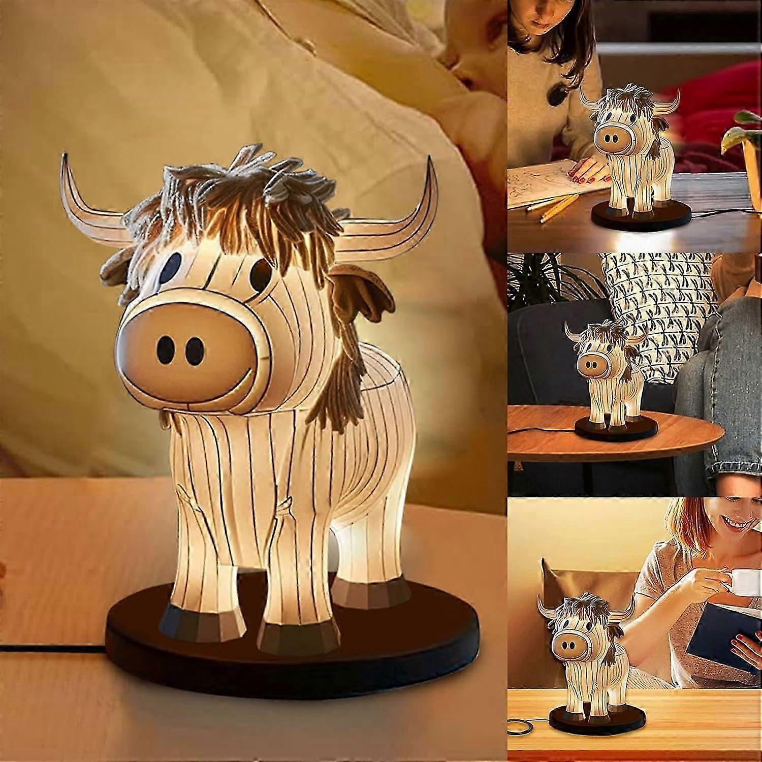 Cow Yak Table Lamp,Small Animal Night Light,Highland Cow Table Lamp with USB,Portable Table Lamp Painted Cow Decorations for Living Room Bedroom, Beds