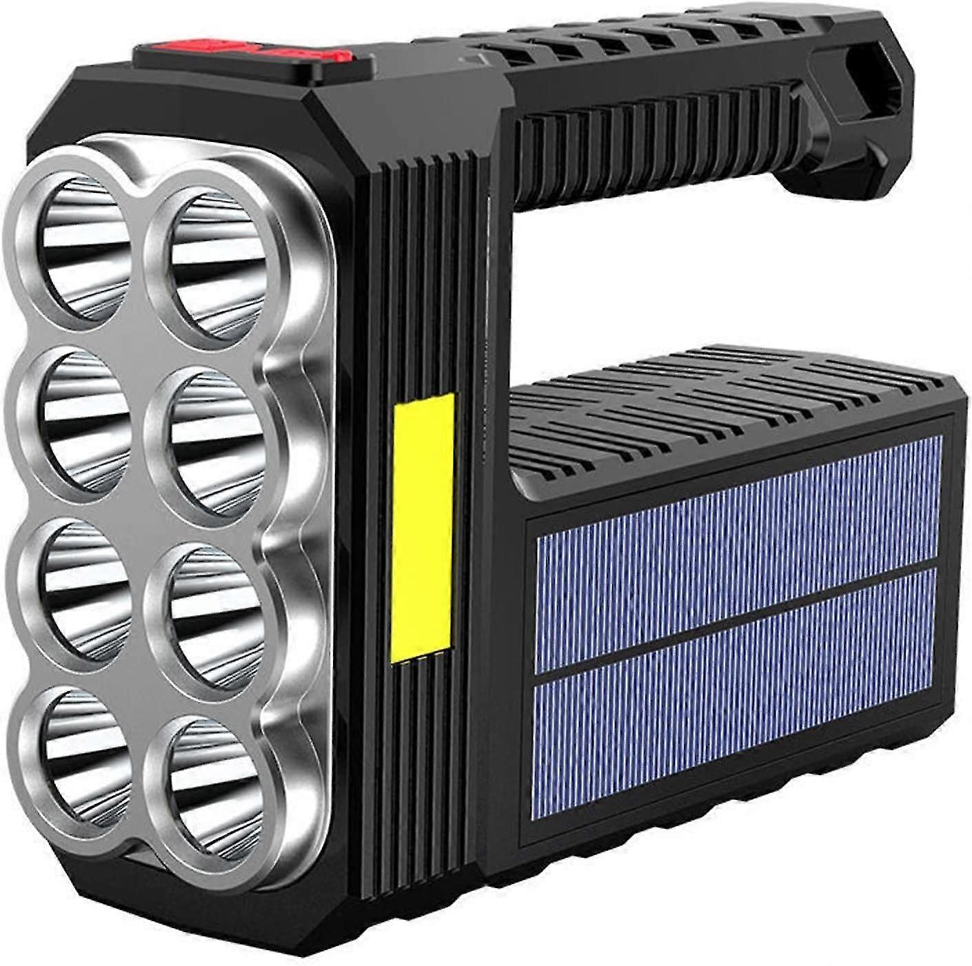 Portable LED spotlight, rechargeable solar lamp with 8 high brightness bulbs, 1200 mAh flashlight, warning lamp for outdoor camping