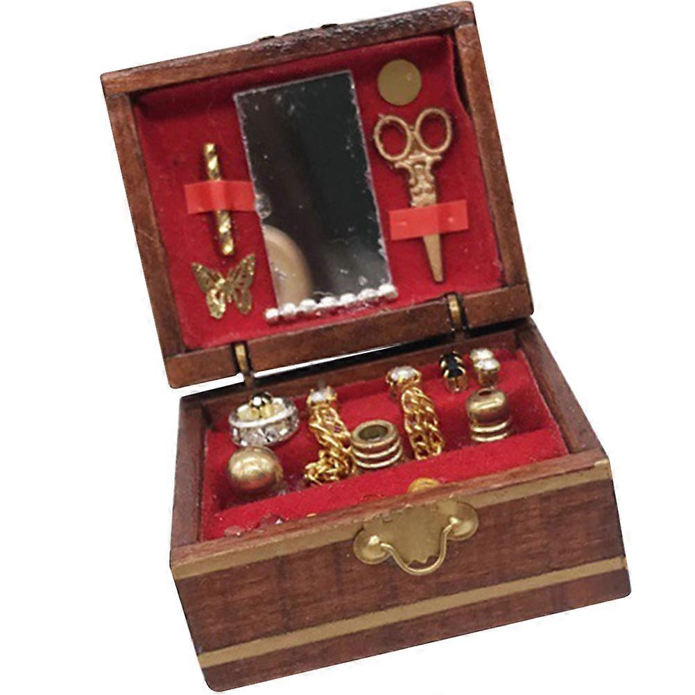 Miniature Treasure Storage Box Miniature Jewelry Box Dark Red Wood Plastic Home Decor Storage 1Pcs