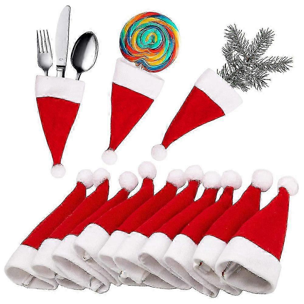 Mini Christmas Hats Christmas Cutlery Tableware Holders Mini Santa Hats For Silverware Holders, Candy Covers, Wine Bottle Decor