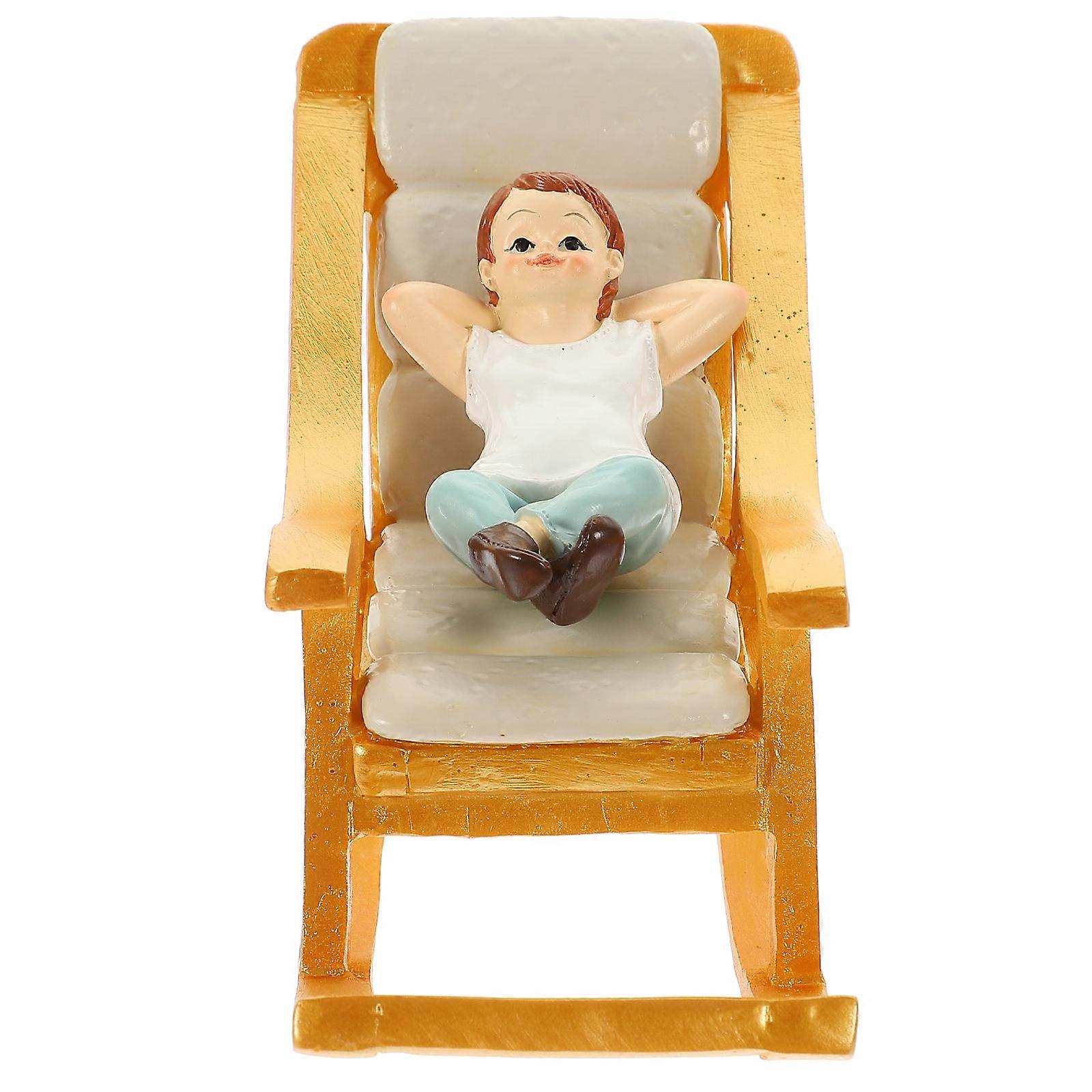 Miniature Rocking Chair Doll House Furniture For Children Indoor Decoration Golden 1Pcs