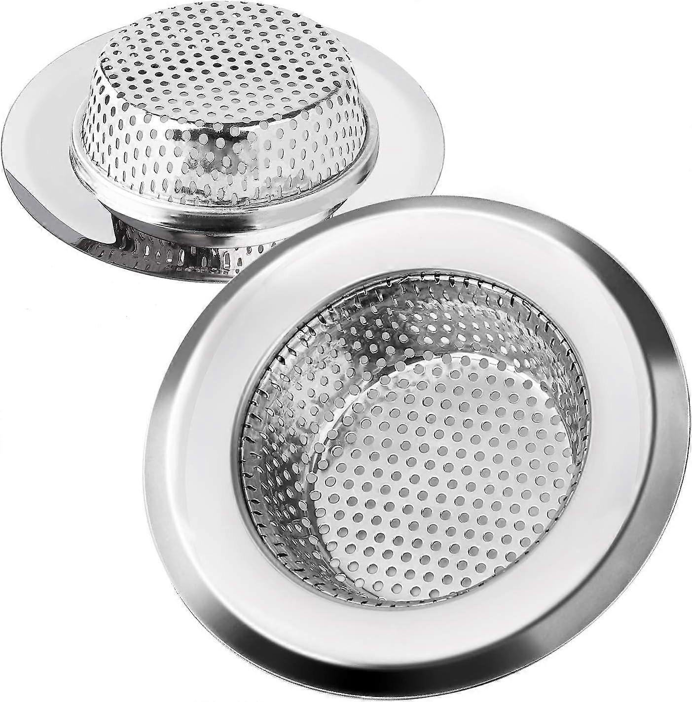 Premium Sink Drain Strainer: Made of high quality stainless steel with anti-corrosion, anti-rust and non-deformable properties, it is thickened and more durable. Thorough processing, no burrs will hurt your hands. Anti-clog: clogs damage your pipes and create bad odors, 2mm diameter micro-perforation filter holes prevent food and hair from causing clogs in your kitchen and bathroom. An effective clog shield allows liquid to flow seamlessly down the drain while trapping food particles. Get rid of clogged sink: Most sink strainers have drain holes of 1mm or more that eventually clog the sink. Our sink strainer has 2mm diameter holes to allow fine particles to pass through. This means no more fishing around dirty water with your hands to unclog the drain. Scope of application: The kitchen sink strainer is suitable for most kitchen sink drains and drains. garbage cans. Outside diameter: 9cm, inner diameter: 5.5cm, depth: 2cm, suitable for sink diameter 5.8cm-7cm. Before purchase, please make sure your sink size is compatible with this colander. Save time and easy to clean: Avoid fumbling around a pool of dirty water trying to unclog the drain hole with your hands. Easy to wash with warm soapy water to keep the mirror finish shiny and flawless over time. Dishwasher.