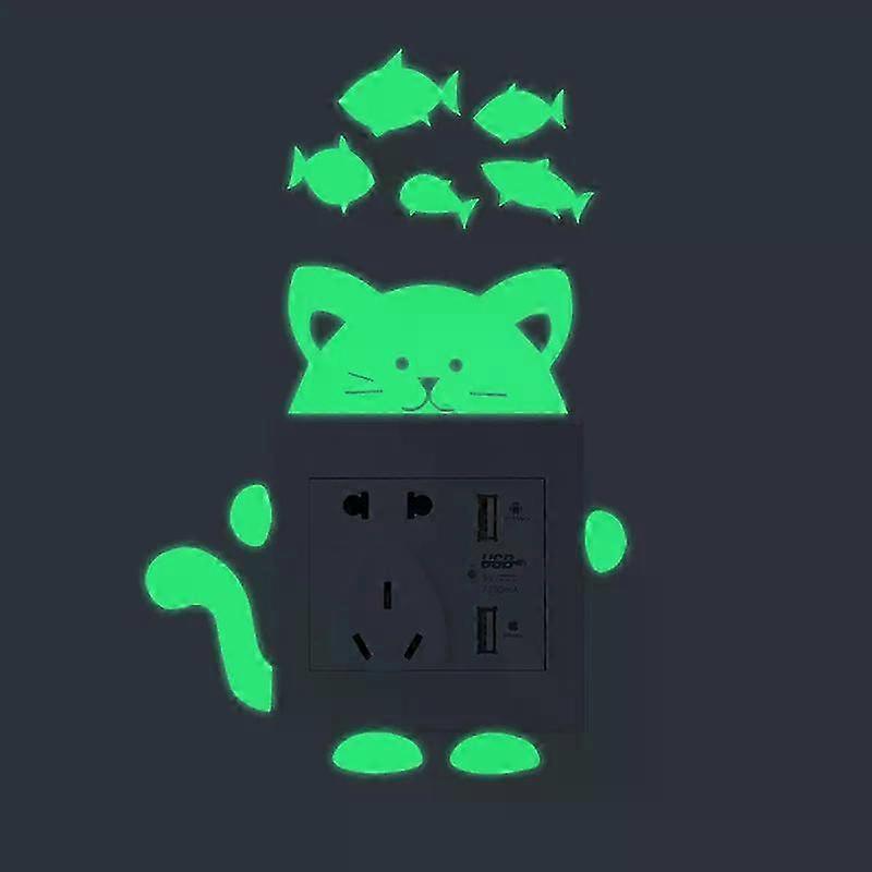 Funny Cute Cat Dog Switch Stickers Wall Cartoon Luminous Switch Sticker Glow In The Dark Wall Home Bedroom Parlor Decoration