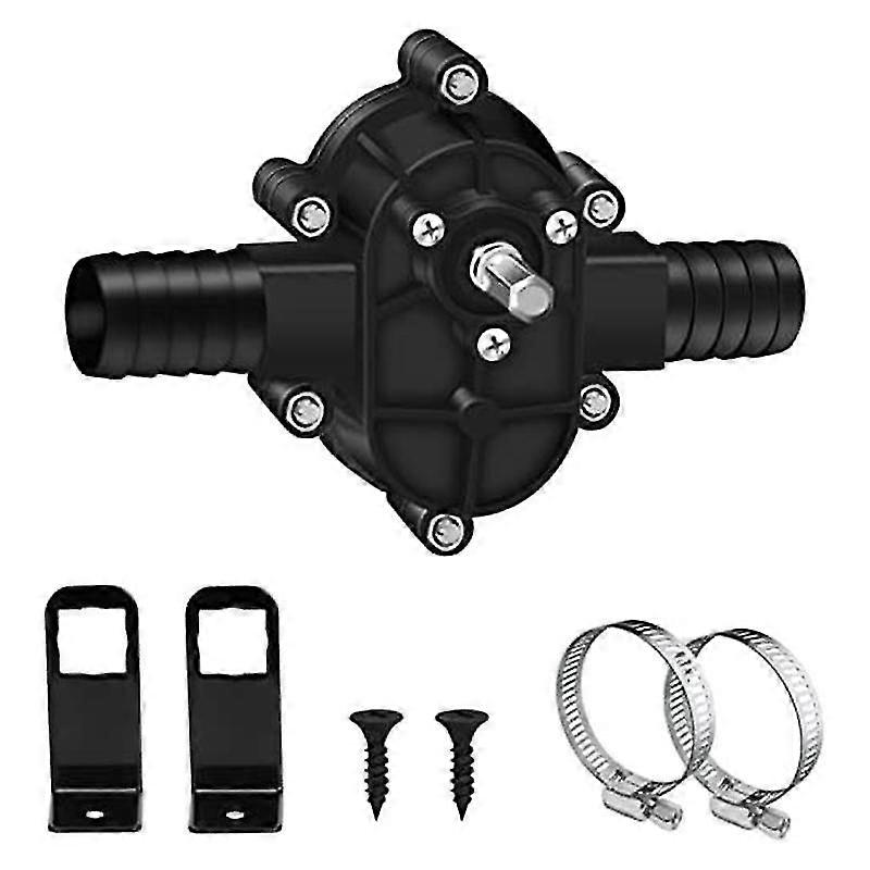 [New drilling machine pump] : Mini pump drilling machine excellent workmanship, plastic, new oval water pump resistant, high -temperature resistant, hard -wearing and with a long service life. A low weight and a portable, comfortable installation has suitable for house, garden and outdoor.[Stable power & high efficiency] : Packaging: two screws, two fastening frames, two clamping rings. Suitable for hand drills with a speed of more than 1000 rpm and an output of more than 100 W. At 1500 rpm, the pressure height is . 1.5 m and the flow is . 15 l/min. At 3000 rpm, the pressure height is . and the flow is . 30 l/min. Safe and reliable, high -performance water pump.[Use area] : works excellently with most electrical hand drills. It converts practically every drilling machine into a high -performance pump. The electrical drilling pump is suitable for promoting liquids such as water, oil, , etc.[Silent design] : The reliable and duarable engine does not produce much noise and offers you a quiet environment. A water column can raise up to3 meters. The lifting height is a maximum height in which the water after connecting the water pipe increases to the nozzle (make sure that the connection is securely and firmly sealed).[Notes] : 1. Do not pump any , viscous or caustic liquids. 2. When operating the pump, make sure that the inlet and outlet sealed. 3. Before promoting liquids that contain particles, a filter should be used. 4. Prohibit the rig in impact mode.Contains: 1 water pump 2 brackets 2 clamps 2 screwsColour:blackMaterial:plasticPackage Contents:1 set x Electric Drill PumpOnly the above package content, other products are not included.Note: Light reflection and different displays may cause the color of the item in the picture a little different from the real thing. The measurement allowed error is +/- 1-3cm.