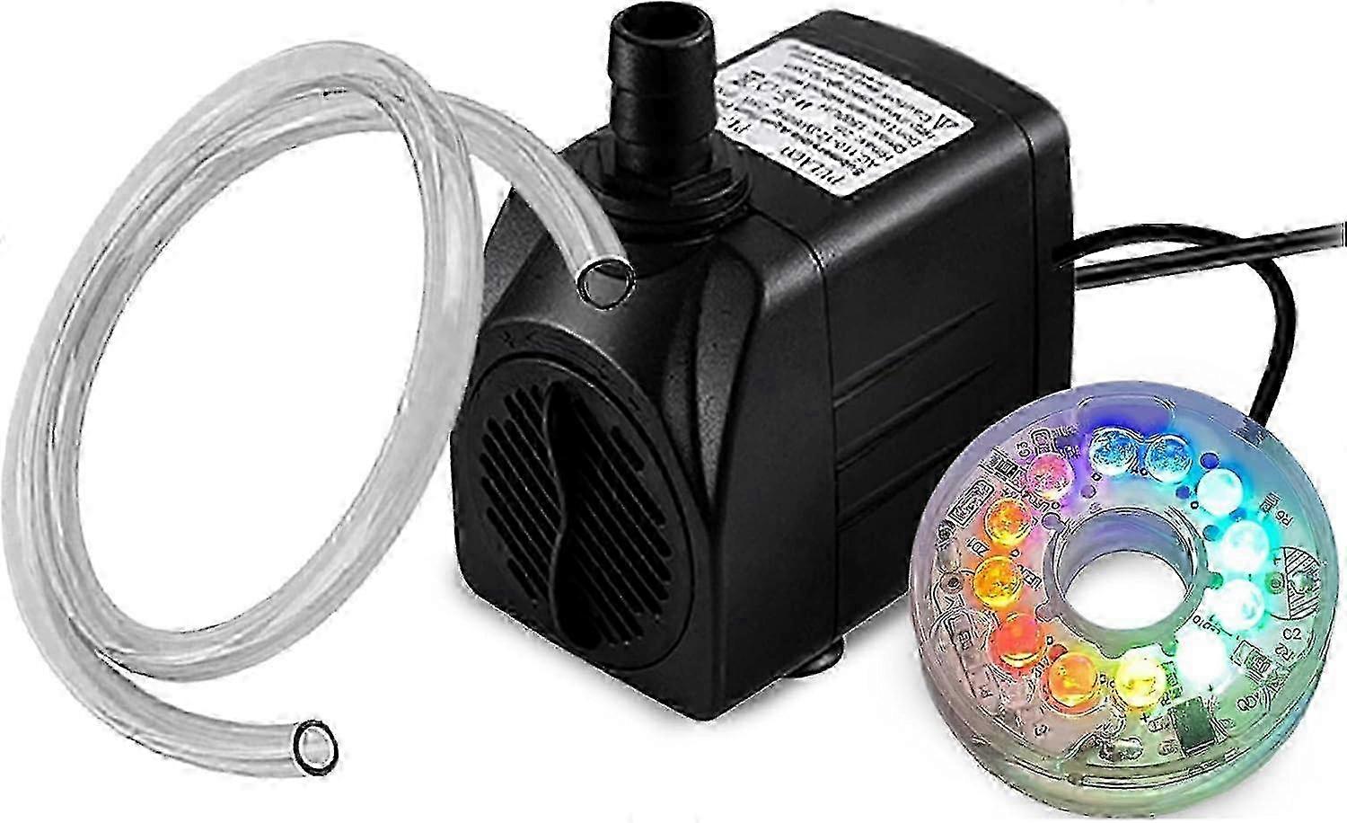 Submersible Water Pump with 160GPH Maximum Flow Rate, Fountain Pump with LED Light Ring, Energy-efficient & Ultra-quiet, Easy Installation, Gift Tube