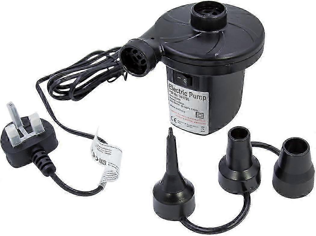 Electric Air Pump/Inflate Or Deflate Airbeds, Paddling Pools & Other Toys / Portable & Lightweight/Includes 3 Nozzles ELECTRIC AIR PUMP This electric air pump delivers a simple way to inflate or deflate airbeds, inflatable toys, paddling pools, and any other inflatable products. INCLUDES 3 NOZZLES The air pump comes complete with 3 different sized nozzles that simply attach to the main body of the unit and will suit all standard valve fittings. MULTI-FUNCTIONAL This portable electric air pump can be used in a number of different places such as at festivals and on camping trips, for back garden pool parties, or generally around the home. PORTABLE LIGHTWEIGHT The air pump can be transported anywhere with great ease thanks to its lightweight stature. The power source is AC220V-240V 130W 50Hz. MILESTONE CAMPING Milestone Camping is the leading manufacturer of everything you need to enjoy the great outdoors. From tents and sleeping bags, to chairs and camp cutlery, visit the Milestone Camping page on Amazon to view the whole range today.