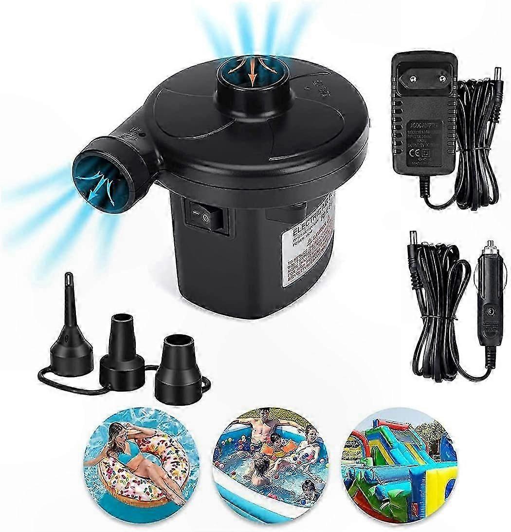 2-in-1 Electric Air Pump with 3 Nozzles, AC 220V-240V/12V for Pool, Air Bed, and Inflatable Paddle Devices