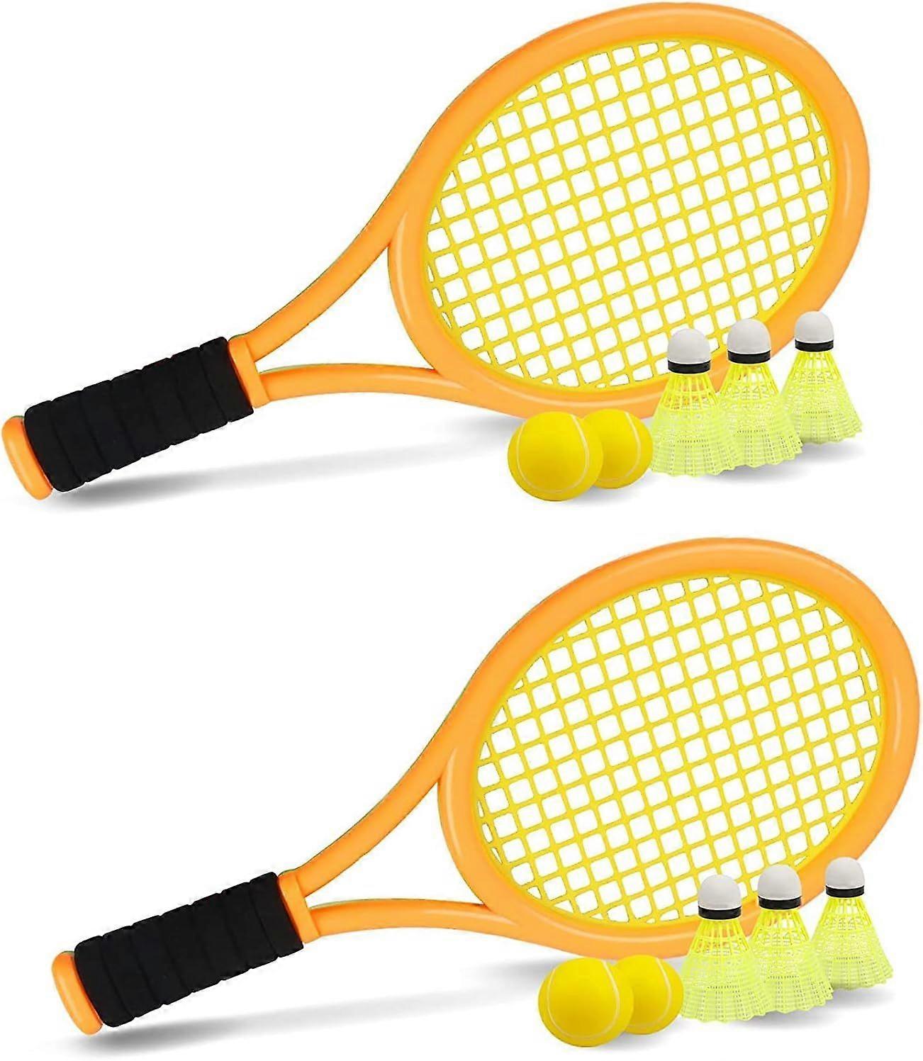 Kids Tennis Racket with Carrying Bag, 4 Soft Training Balls and 6 Badminton Rackets, Kids Tennis Racket Gift Set for Outdoor, Indoor Sports