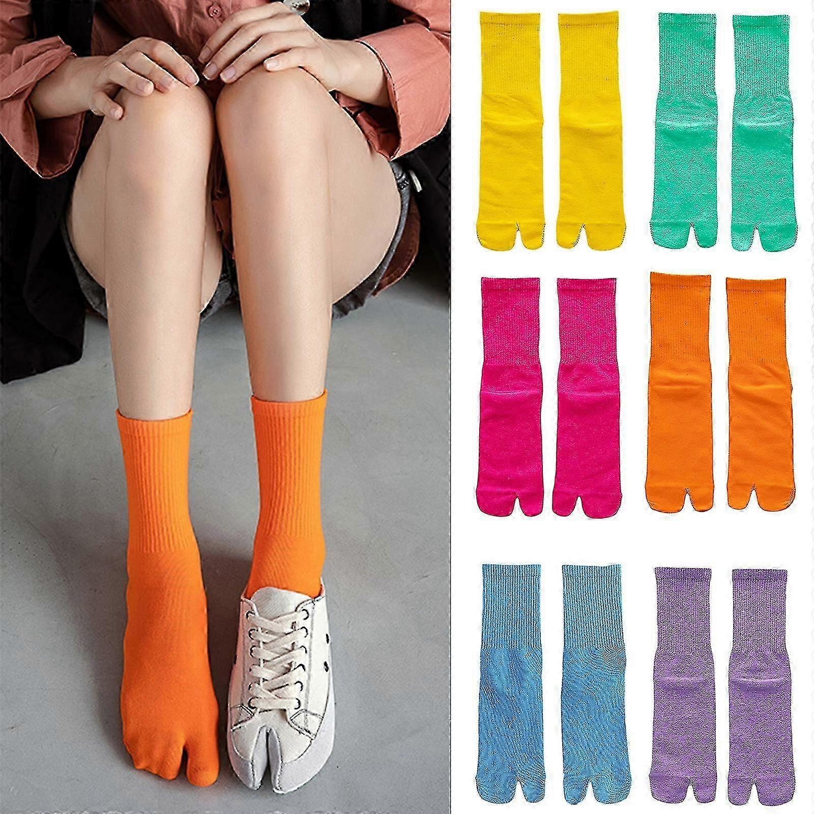 Ribbed Cotton Split Toe Kimono Tabi Crew Socks Neon Solid Color Skateboard Casual Mid Tube Hosiery for Women and Men