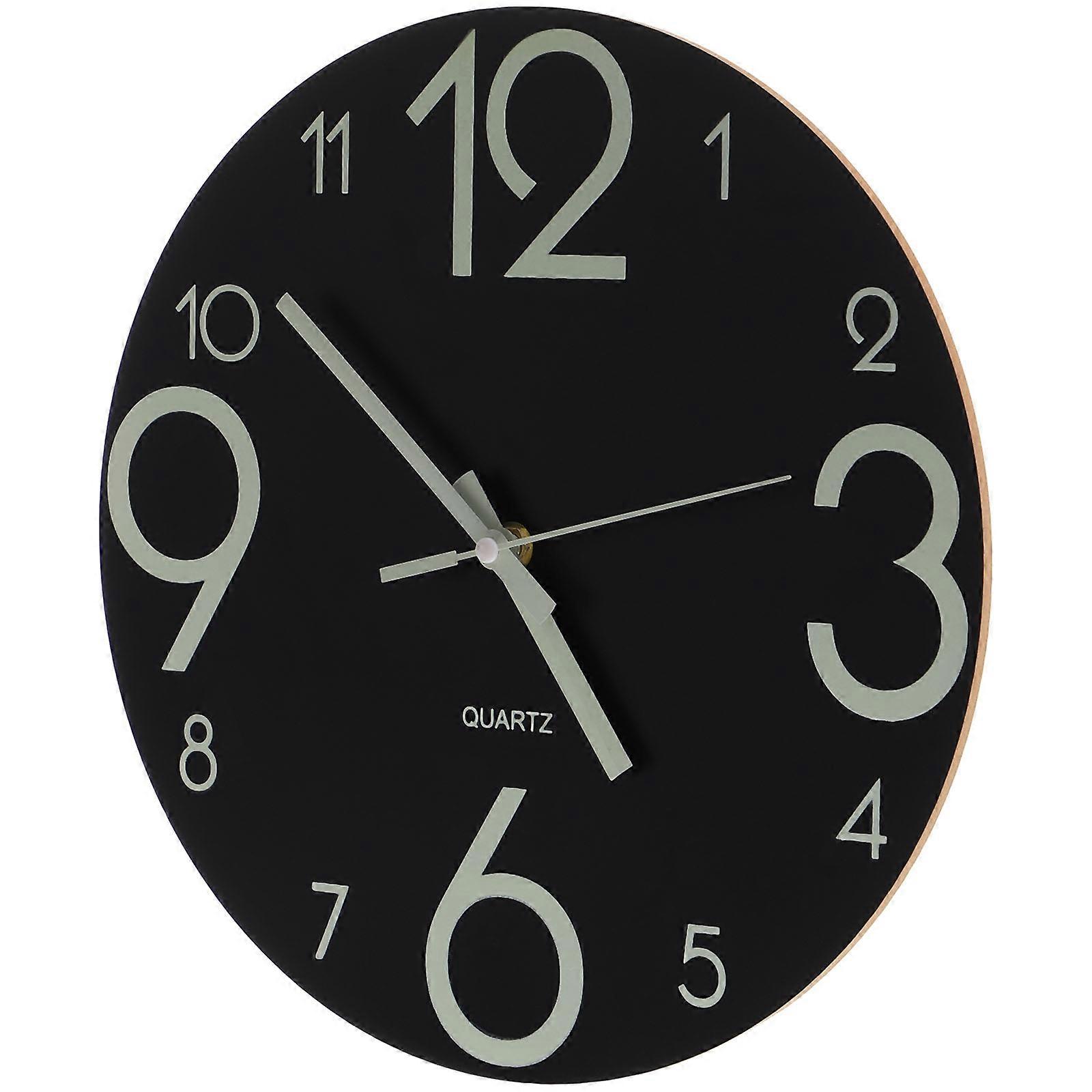Luminous Wooden Wall Clock Silent Hanging Round Design Home Decor Nightlight Function No Battery Needed Bedroom Living Room Use