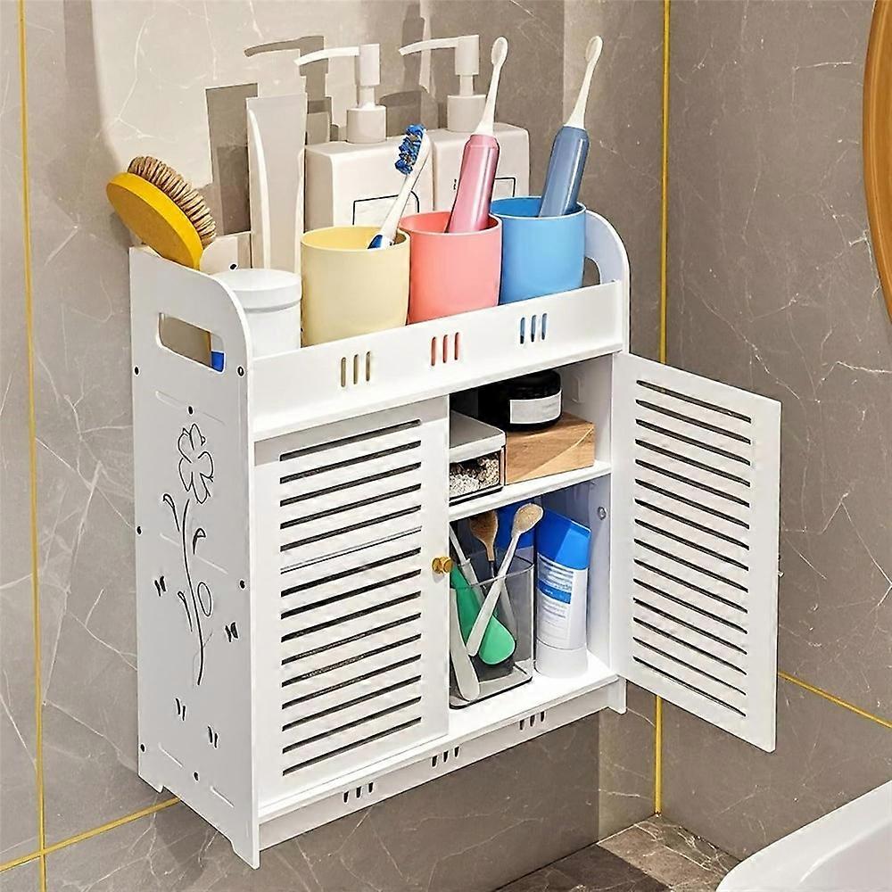 Bathroom Kitchen Multi-Layer Storage Rack Wood-Plastic Board Wall-Mounted Large Capacity Cabinet