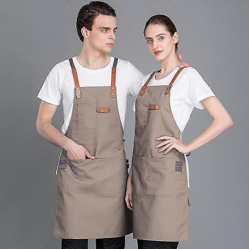 Kitchen Apron Adjustable Apron With Pocket Kitchen Grill Garden Restaurant Cafe Apron Chef Baker Waiter Waitress Waitress Apron Man And Woman Khaki (2
