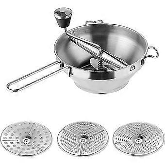 Ergonomic Kitchen Puree Mill,food Mill,manual Vegetable Press,stainless Steel Vegetable Mill With 3 Sieve Inserts,manual Non-electric Food Grinder,dis