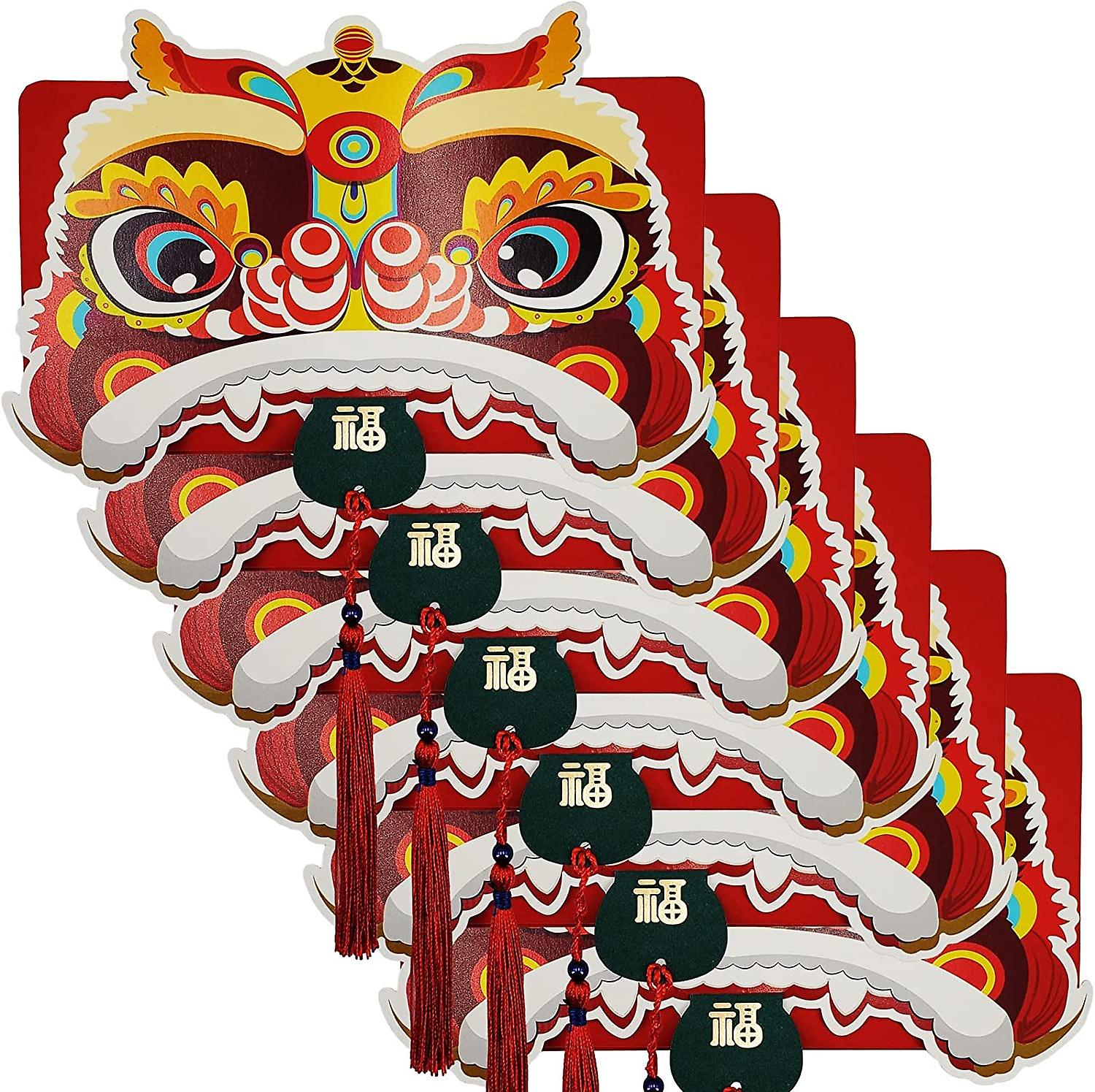 BRING GOOD LUCK 2022 Chinese zodiac year of the tiger red packet and full of lucky Chinese red, as a token of good fortune for the upcoming year. PACKAGE 6pcs red pocket with novel designed of cartoon tiger image, unique foldable opening and closing method, bring people a more enjoyable experience. The size is (3.7x6.9 in) / (9.6x17.6cm). BEST WISHES The covered with the red envelope expresses traditional blessings in Chinese characters, meaning "Blessing" and "Peace and Happiness". BEAUTIFUL DESIGN Made of red cardboard, good quality and not easy to bend. The tiger image and red tassels with traditional Chinese cultural elements are brightly colored, vivid and eye-catching. BLESSING RED ENVELOPE Red packets are gifts presented at Chinese New Year. It means the best wishes from the elders to the younger generation, hope they are healthy and happy. It has a good meaning, full of New Year's atmosphere.
