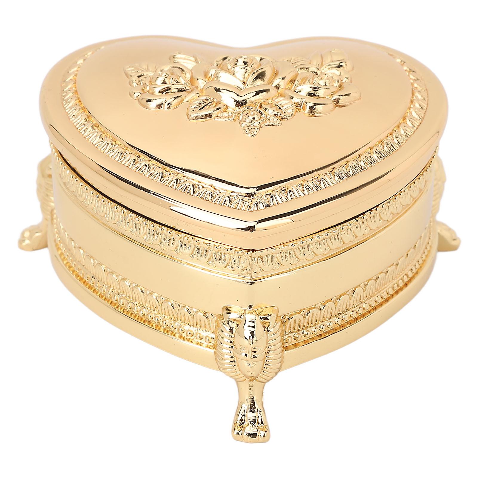 Metal Heart Shape Jewelry Box Zinc Alloy Vintage Heart Trinket Box Golden Trinket Organizer for Rings Earrings