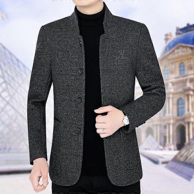High-End Woolen Coat, Men's Lapel Casual Jacket, Autumn And Winter Business Woolen Top, With Added Fleece And Thickened, Trendy
