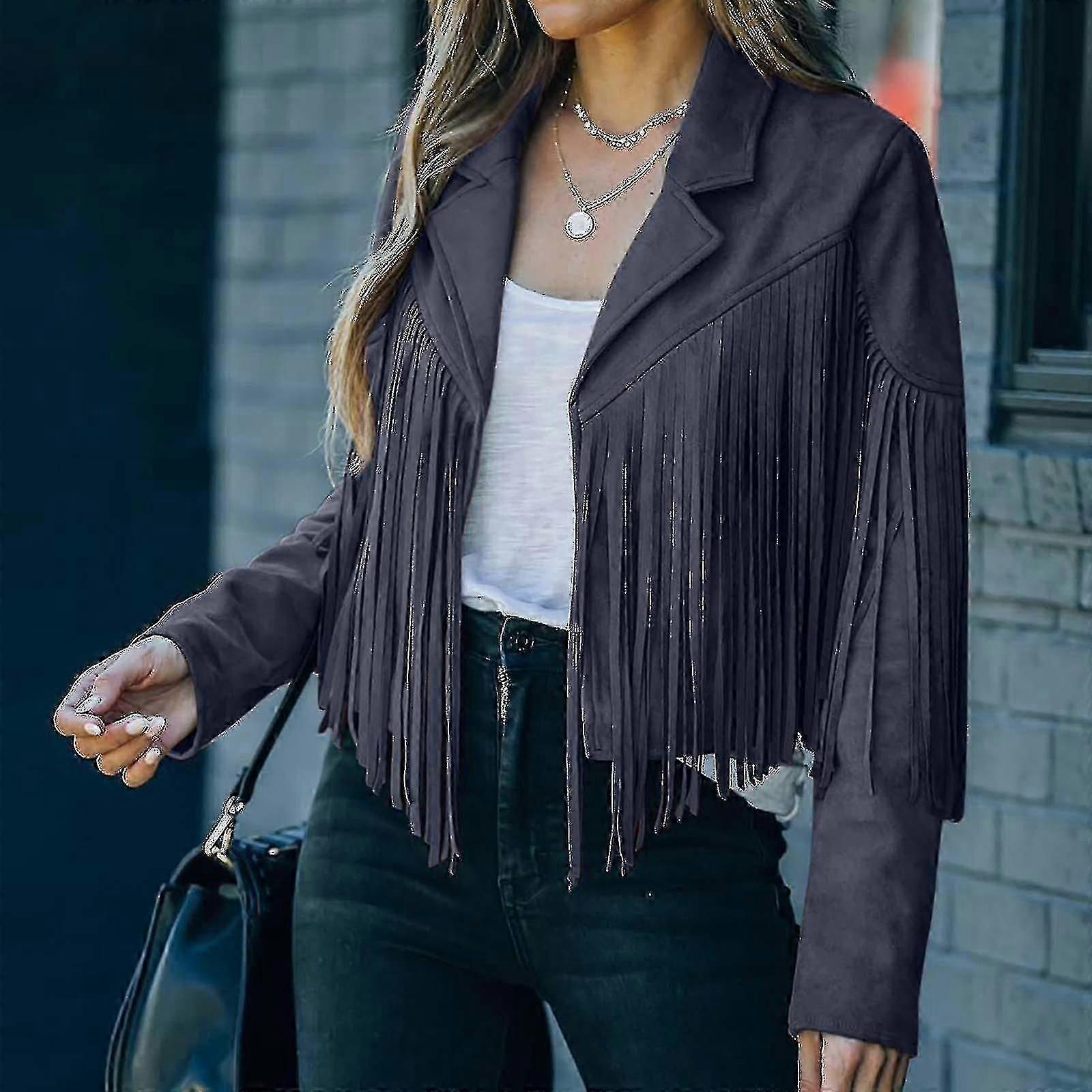 Fringe Coat For Women Faux Suede Leather Cowboy Style Coat Long Sleeve Tassels Cardigan Coat hg1-25