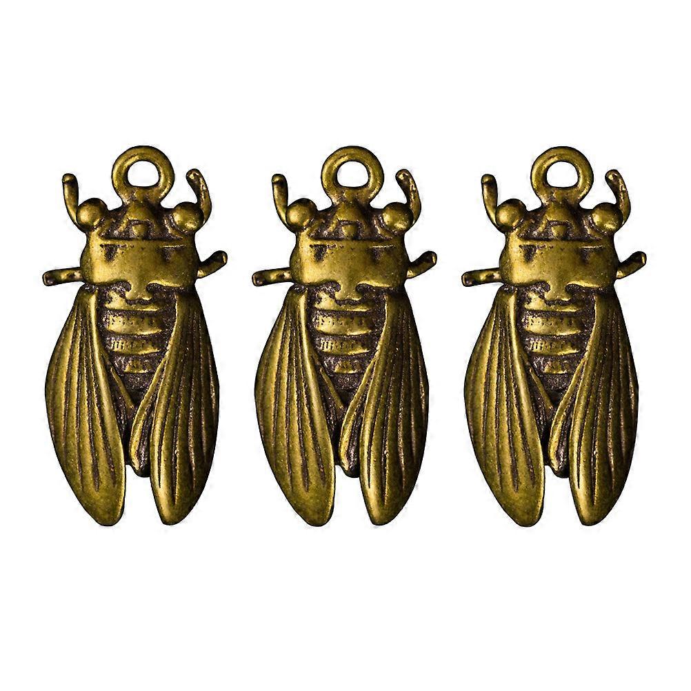 Vintage Brass Cicada Pendants 3pcs Creative Decorative Keychain Accessories for DIY Crafting Durable, Fade Resistant Retro Design for Friends and