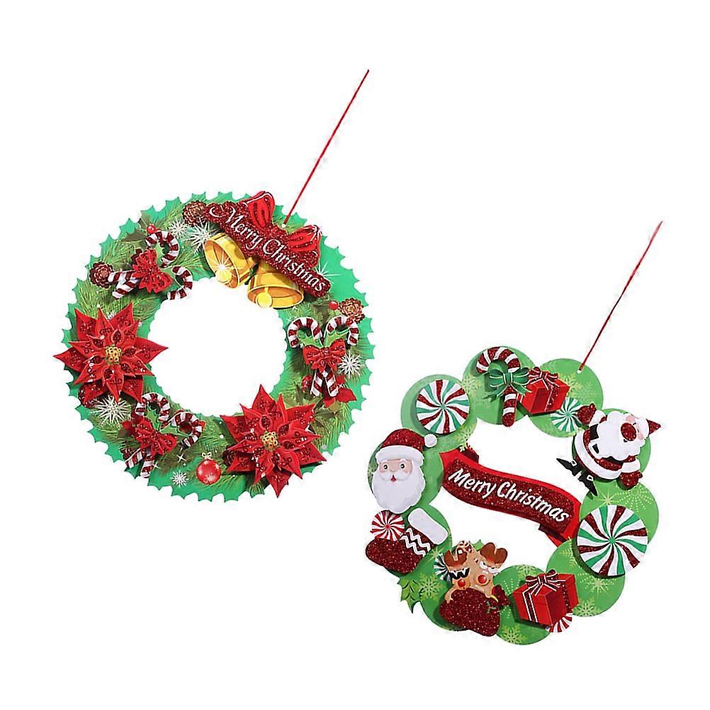 Hanging Wreath Christmas Decoration 3D Round Paper Garland Door Sign Lifelike Colorful Wall Decor 37x37x0.5cm 2Pcs