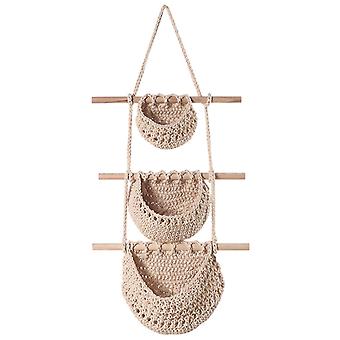 Hanging Fruit Basket 3 Tier Over The Door Organizer Handwoven Design Fruit Hammock