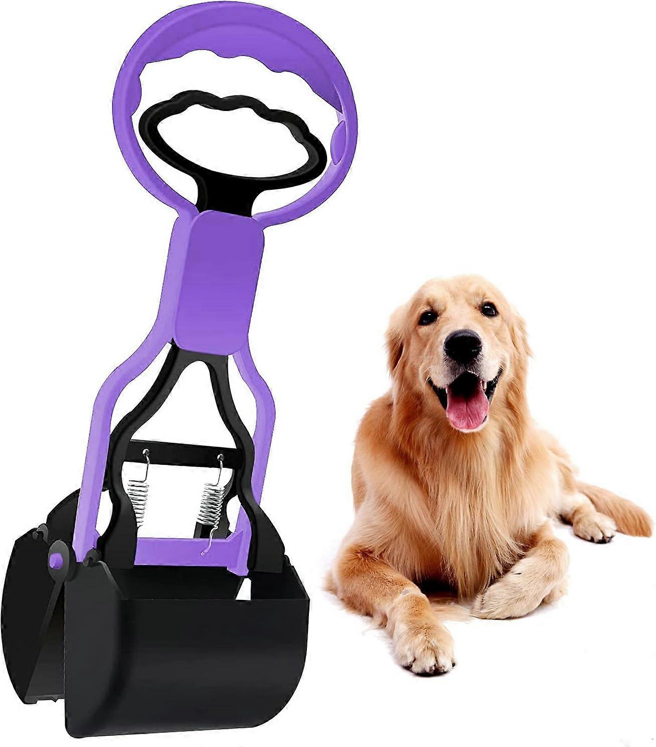 Pet Dog Pooper Scooper, with Jaw Claw, Bin for Easy Grass and Gravel (Purple)