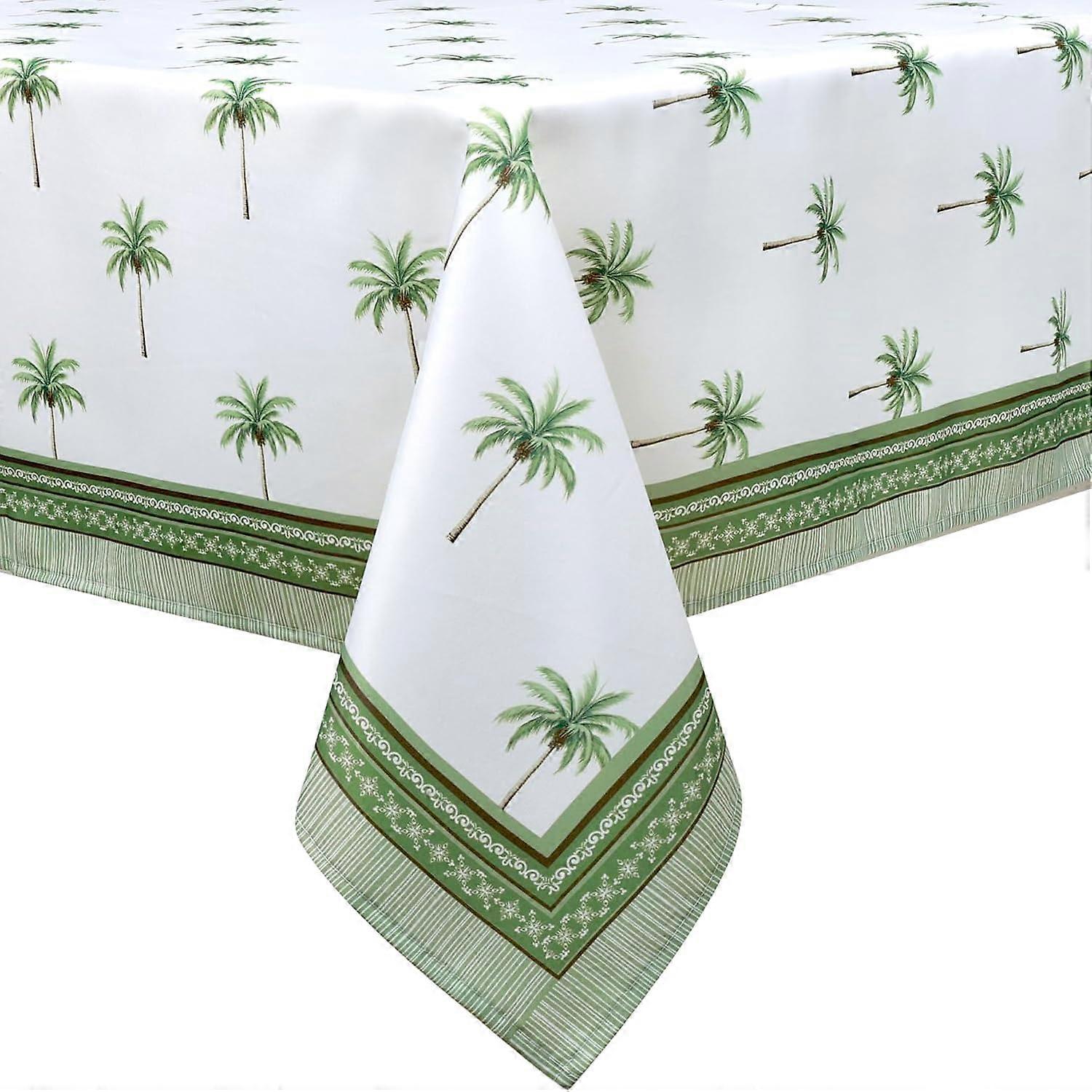 Tropical Palm Tree Tablecloth Waterproof, Summer Plants Bordered Vintage Rectangle Table Cloth, Washable Table Cover for Kitchen Dining Party Decor (6