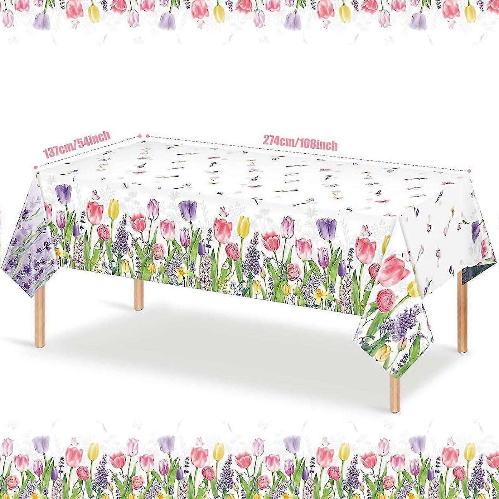 Spring Plastic Tablecloth, 137*274cm Tulip Plastic Tablecloth, Blooming Floral Disposable Table Cloth, Watercolor Seasonal Holiday Table Cover