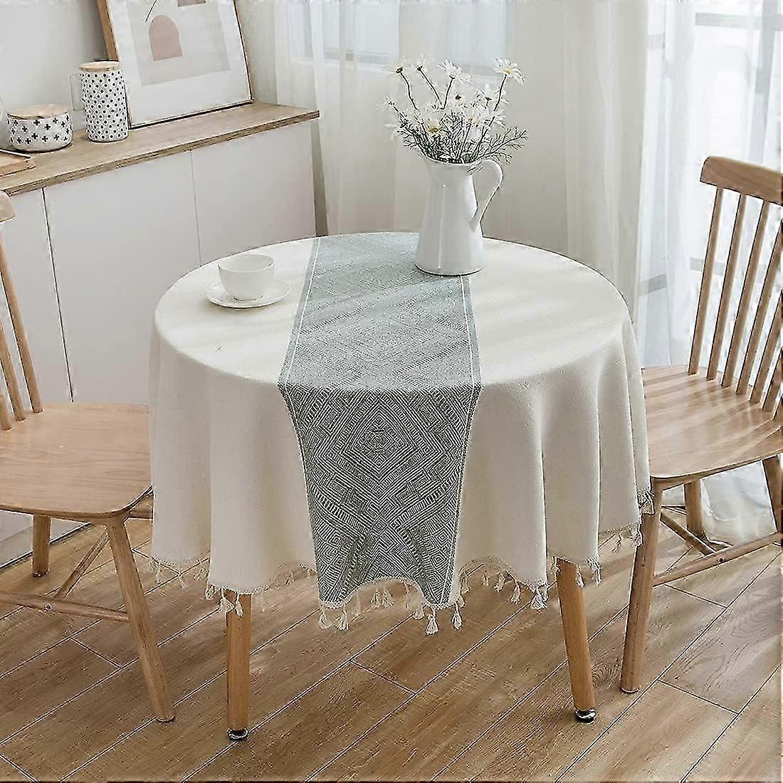Farmhouse Striped Round Tablecloth with Tassels Geometric Jacquard Dust-Proof Table Cover for Kitchen Dining Room Tabletop Decorations (Green,Diameter