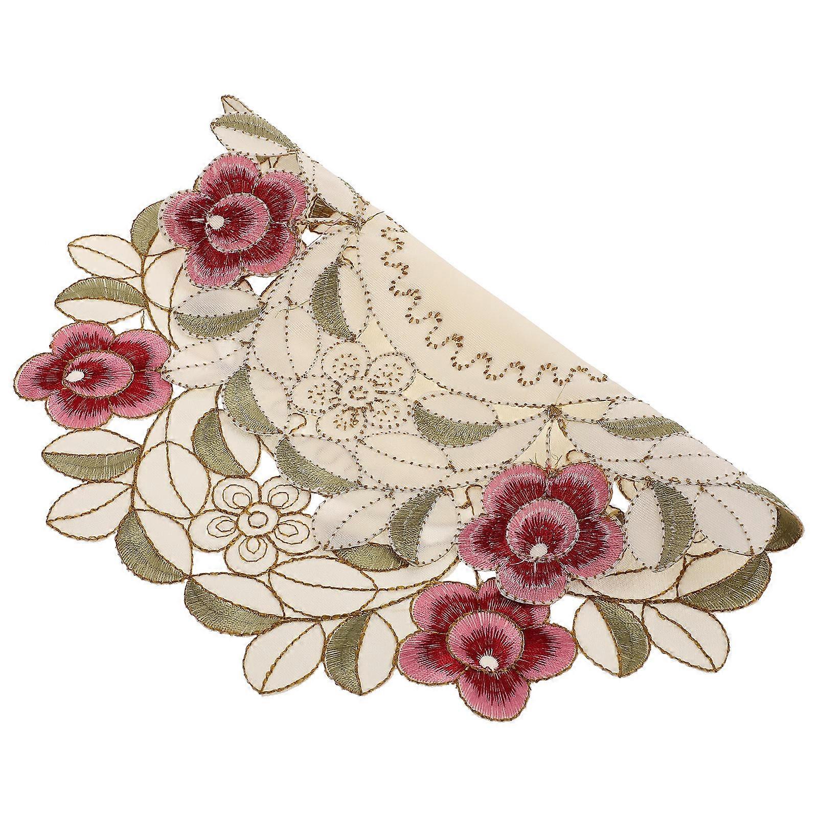 Heat Resistant Round Placemat with Embroidered Floral Design, Insulated Cushion for Kitchen, Dining Table, and Restaurant Use