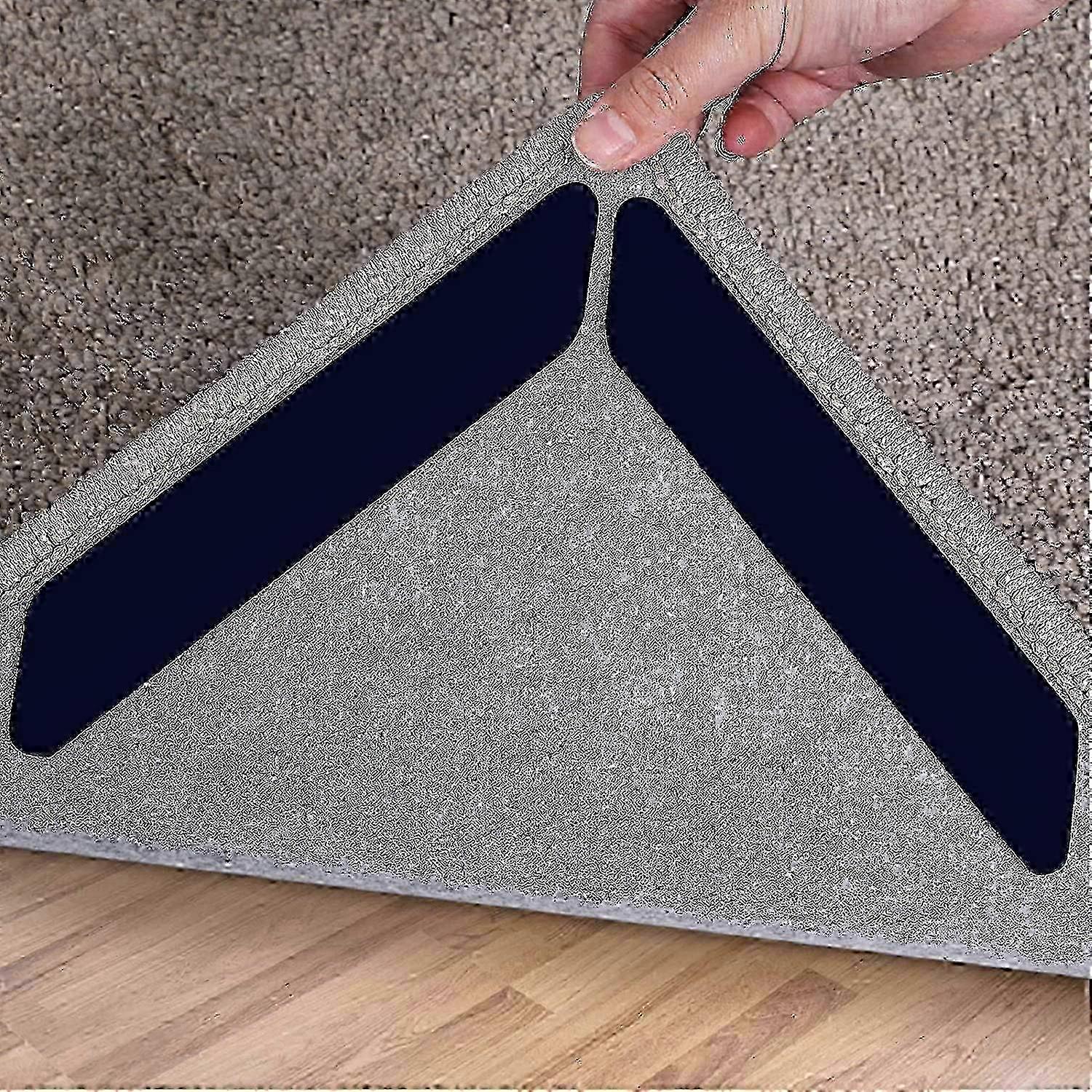Rug Grippers,16 Pcs Double Sided Washable Corner Carpet Gripper(black)