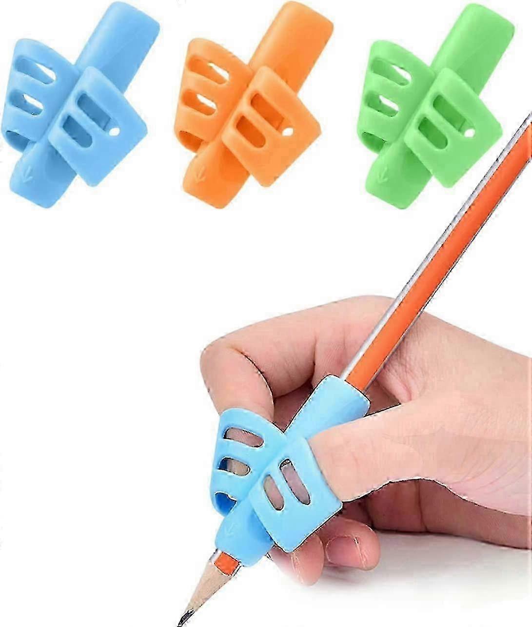 Pencil gripper can help Help Kids In Correctly Position And Hold Pencils. Lead to write in a correct way. This is a new upgrade pencil grips for kids handwriting, easy to use. HOLLOW VENTILATION DESIGN, WIDELY USEPencils Grips hollow design,Comfortable and breathable,Combining the advantage and shortcomings of various pencils grips on market, double finger pencils grips, , easy to grasp. suitable for pen for 7.2-8.2 mm in diameter. Fits On Pencils, Pens Without Grips And Other Standard Size Writing Instruments. EASY TO USE,FOR RIGHTIES AND LEFTIES pencil grips can be used by righties and lefties. You can just put your thumb and index finger into the holes of side, Use double finger pencil grips, easy to grasp. MEET DIFFERENT PEOPLE'S NEEDSpencil gripper can be used by children. With consistent use, it prevents your middle finger from cocooning and keep you a good writing habit for a long time. Specifications: pencil grips : L 1.57in x W 0.59in x H 1.96in. Hole Diameter :8 mm or 0.35inches. Color: Orange, Light blue, Green Package includes: 3x Pencil grips.