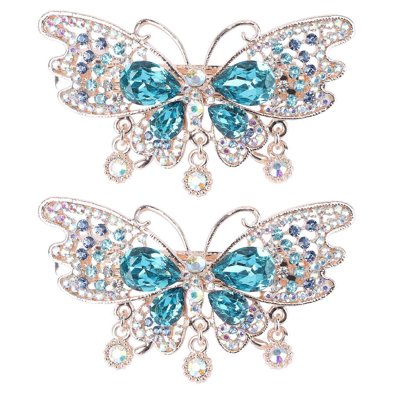Automatic Hair Clips 2PCS Stylish Spring Ponytail Holders for Women, Crystal Embellished Barrettes for Parties & Events