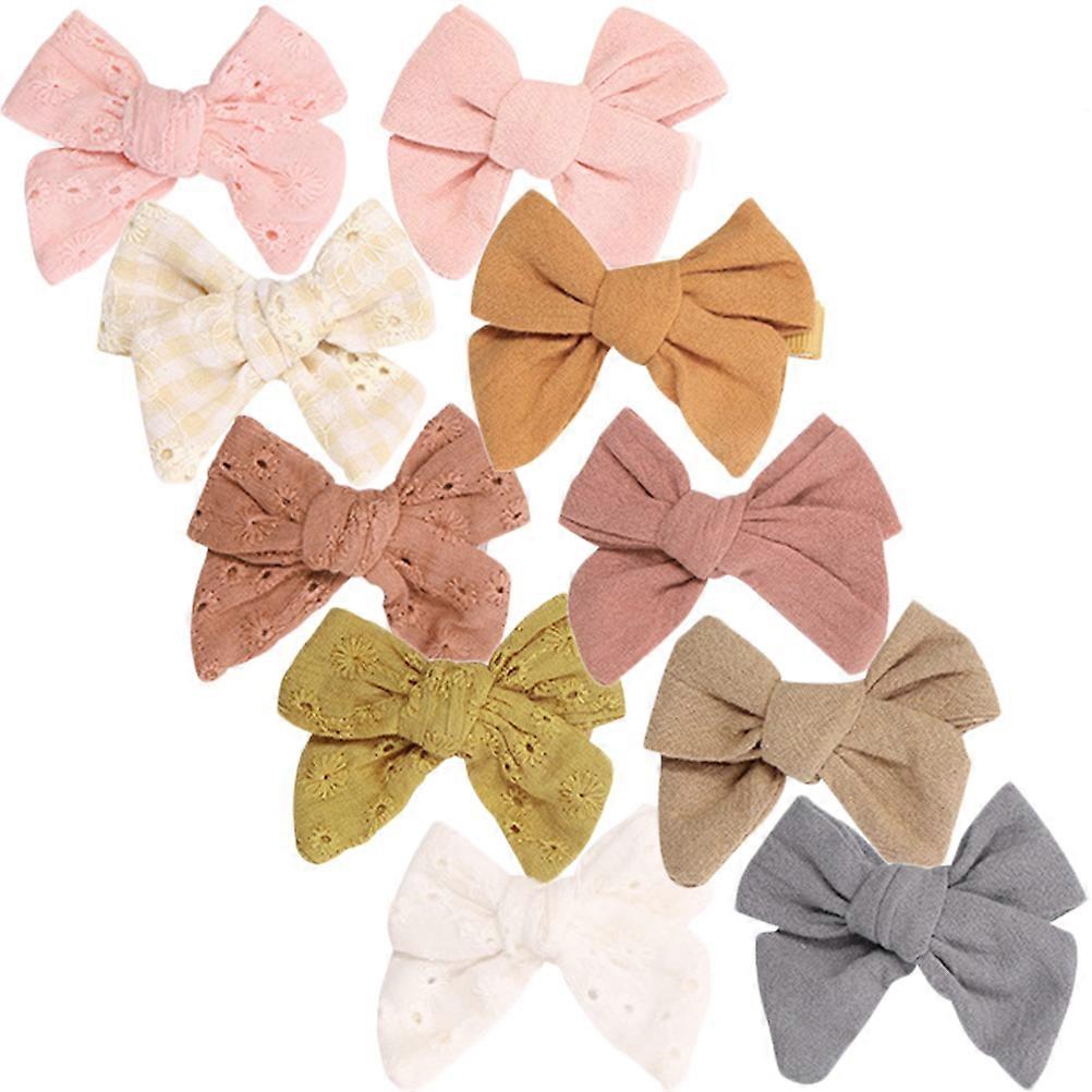Girls Hair Bow Clips with Embroidered Flowers for Women Assorted Color Fabric