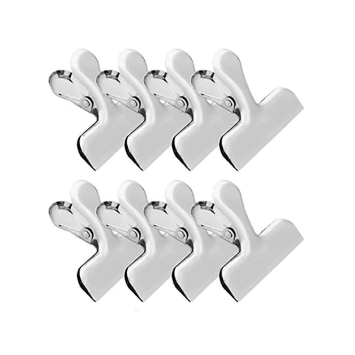 These bag clips are made of stainless steel. These undergo a process. Strong and durable and odor-free, 't crack like plastic. Keep potato chips or most other kinds of foods .These kitchen clips for are easy to use, you can clip these bag chips on the shelf of your kitchen pantry or in your refrigerator shelf for easy use, no more digging in your drawer for clips for foodThe chip bag clip edge is and round, so it will not scratch or scratch the hand. These chip clips the safety of your family.WARM TIPS that the chip clip is too strong to it open wide with a little more effort than usual plastic clips for the first time to use. lightweight chip clip for homes and offices. Suitable for open plastic bags and food bags like bread, candy bags, potato chips, candy and nuts. Also available for paper, pictures, photos, or background clips.Colour:silverMaterial:Stainless steelSize: 7.7 x 6.4cmPackage Contents:8 x Stainless steel clipOnly the above package content, other products are not included.Note: Light reflection and different displays may cause the color of the item in the picture a little different from the real thing. The measurement allowed error is +/- 1-3cm.