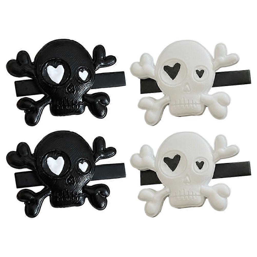 Skull Hair Clips 2 Pairs Gothic Halloween Accessories for Women, Skeleton Design, Black White, for Parties, Festivals, and Costumes