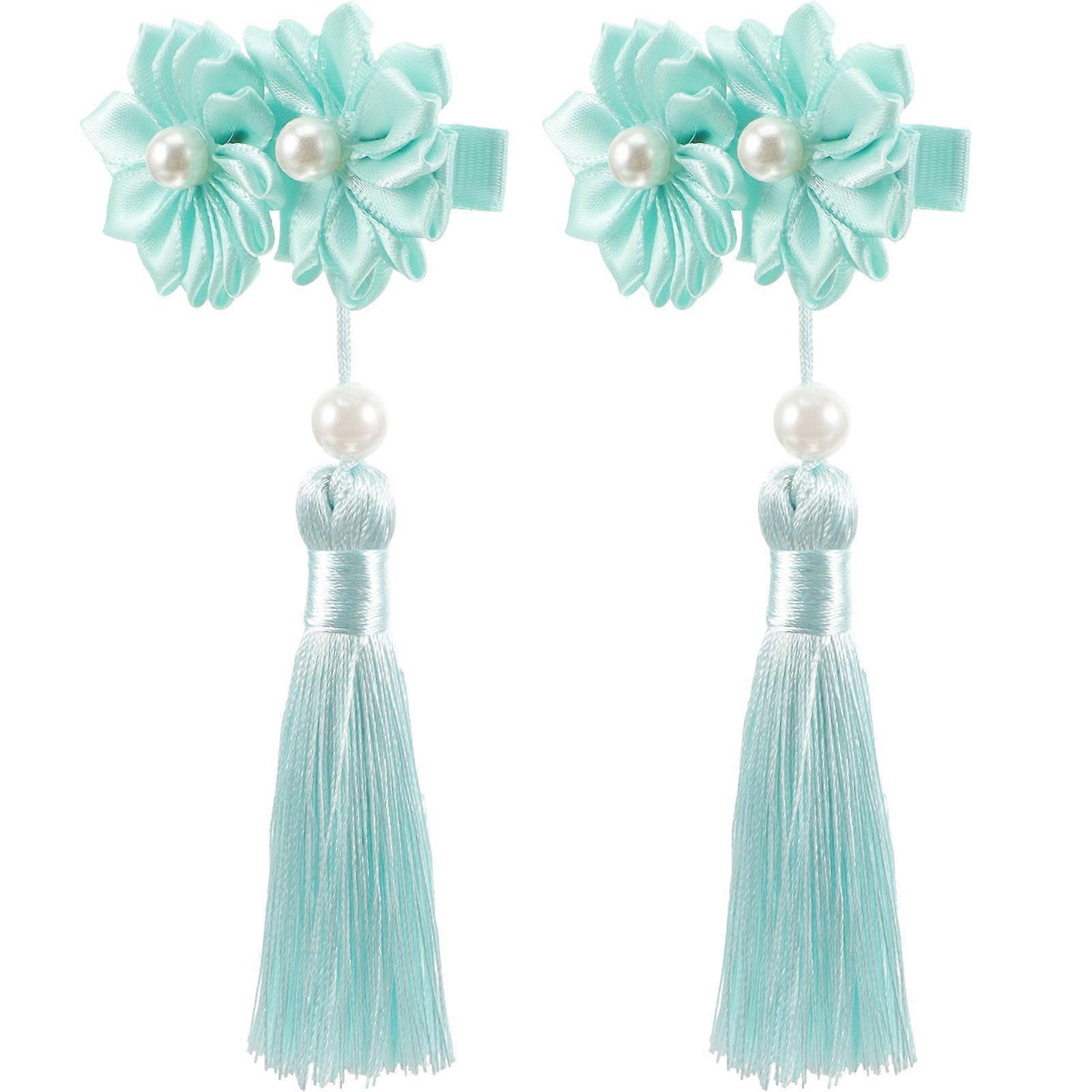 Green Cloth Flower Hair Clips with Tassel for Girls Elegant Chinese Style Hairpin for Decoration