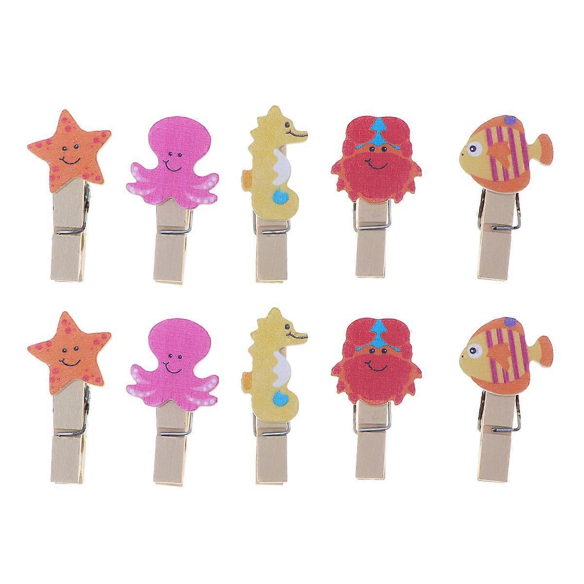 Decorative Small Clips Marine Shape Wooden Photo Holders For Kids Birthday And Christmas 10Pcs