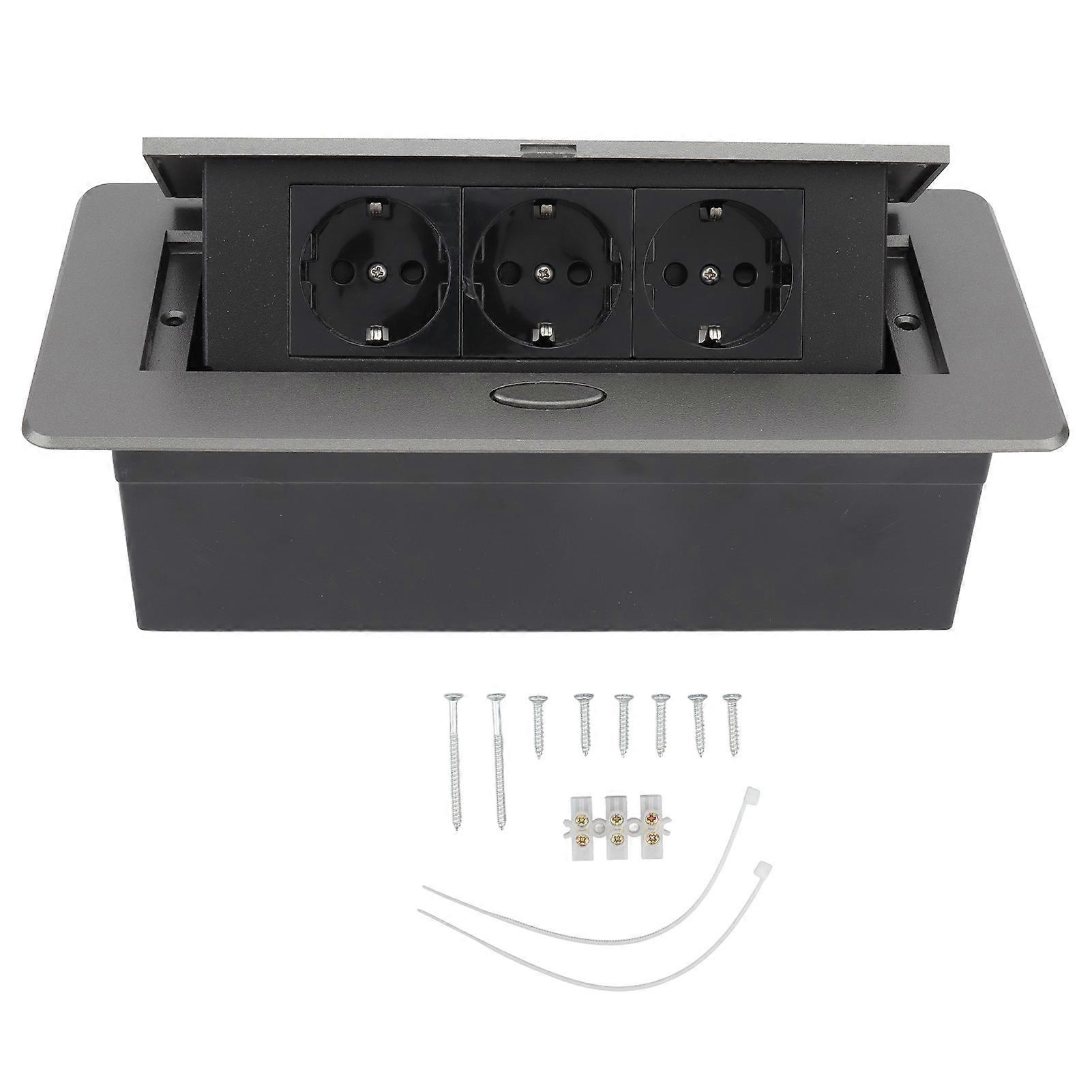 EU Power Socket 3 Outlets Flame Retardant Waterproof Recessed Power Strip 250V Dark Grey