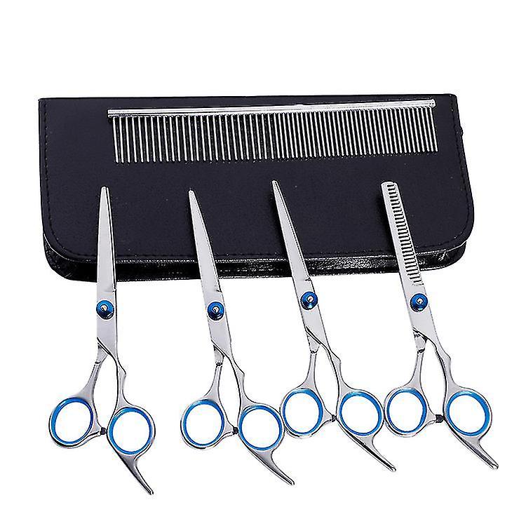 Dog Grooming Scissors, 5 Pcs Professional Stainless Steel Trimmer With Pocket Comb, Cats And Pets Bo