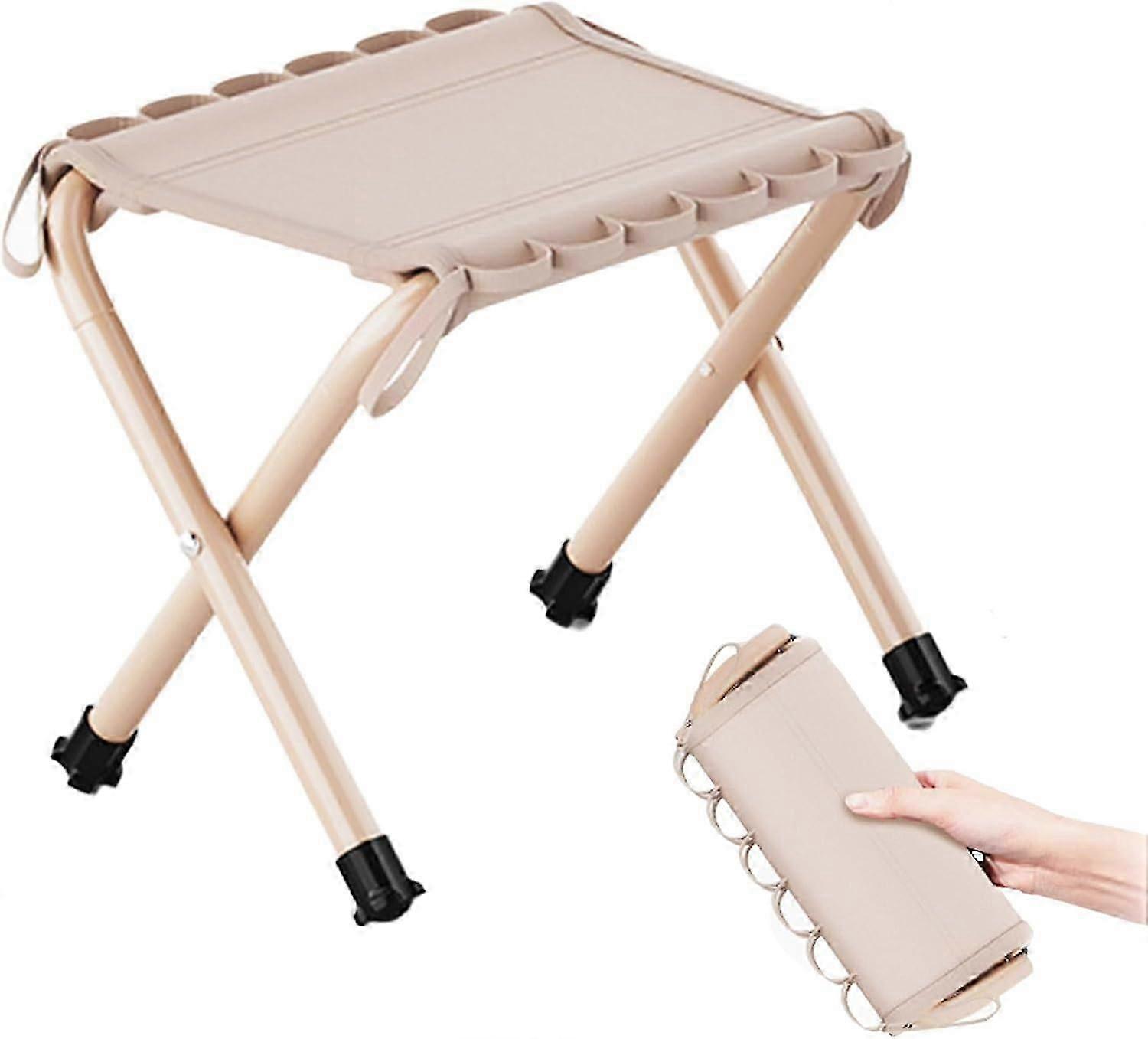12inch Mini Portable Folding Stool, Camping Fishing Stool Suitable for Adult Fishing, Outdoor Hiking, Garden and Beach, Hold Up to 286 LBS(Khaki)