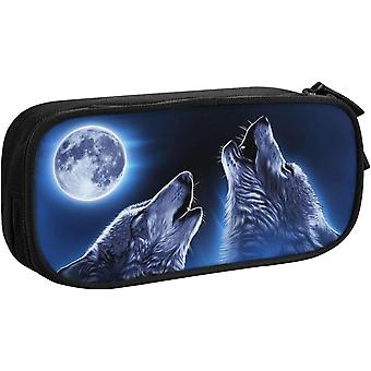 مقلمة الذئاب عواء القمر حقيبة تخزين القرطاسية سعة كبيرة مزدوجة الطبقة مقلمة لفتاة المدرسة والصبي8084