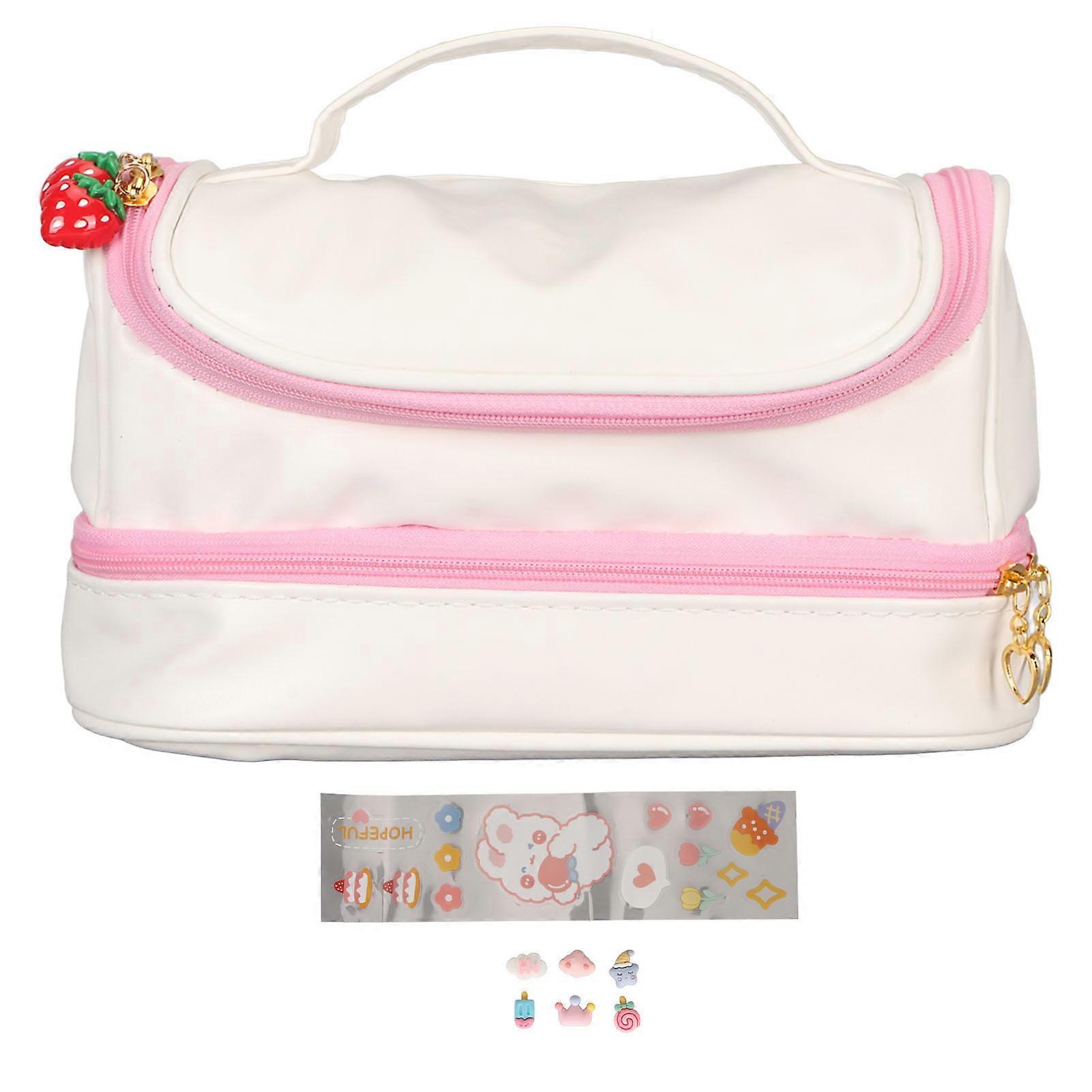 Large Pencil Case Cute Large Capacity Double Tier Handle Design Durable PU Pencil Bag for Office School Travel