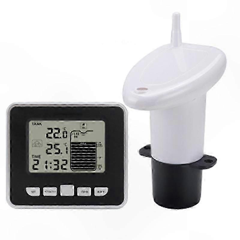 Ultra Liquid Level Meter with Temp Sensor, Wireless Water Tank Monitor, Battery Indicator, Time Display