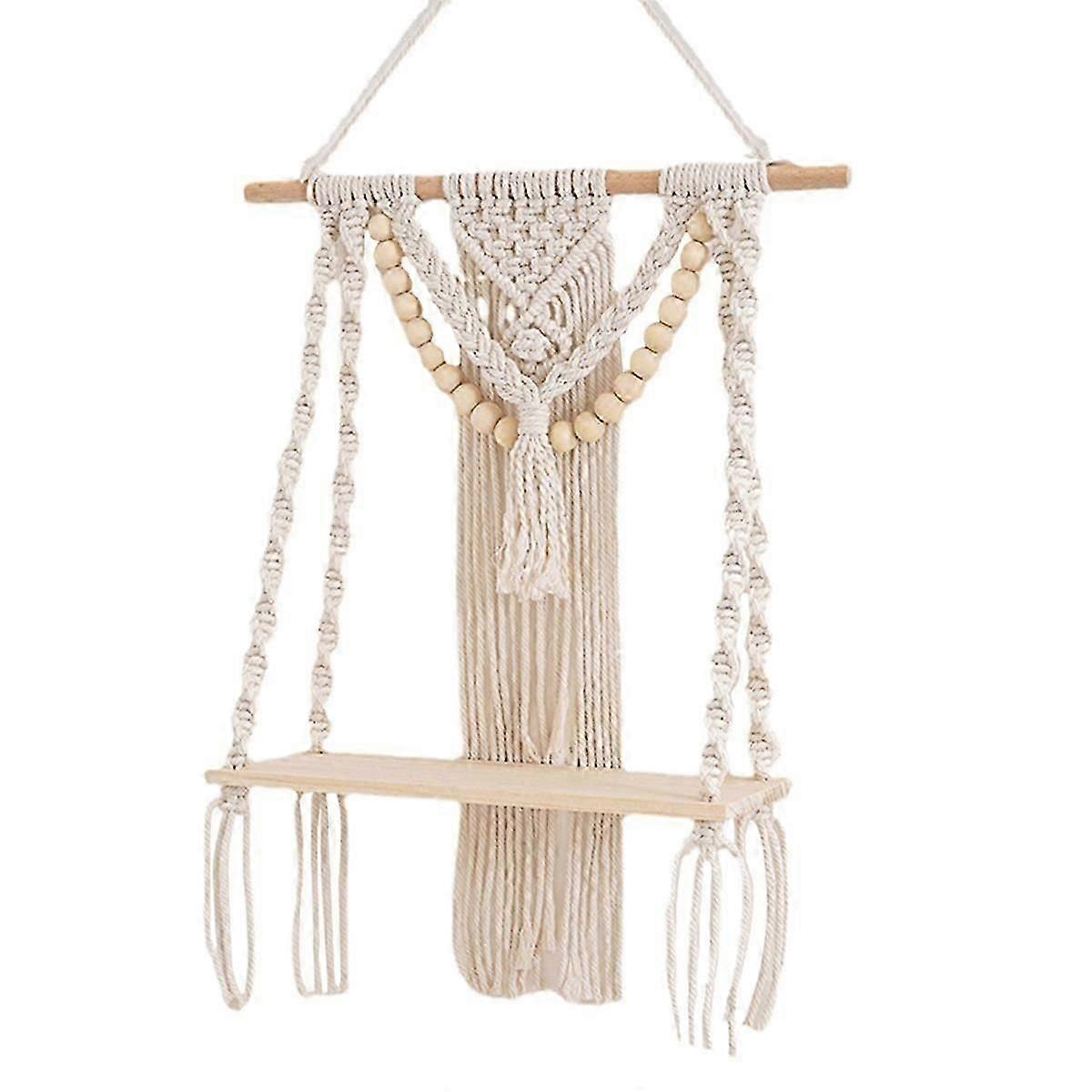 Macrame Wall Hanging Shelf Wall Decor for Bedroom Woven Rope Macrame Wall Art As Boho Bathroom Shelf Decor