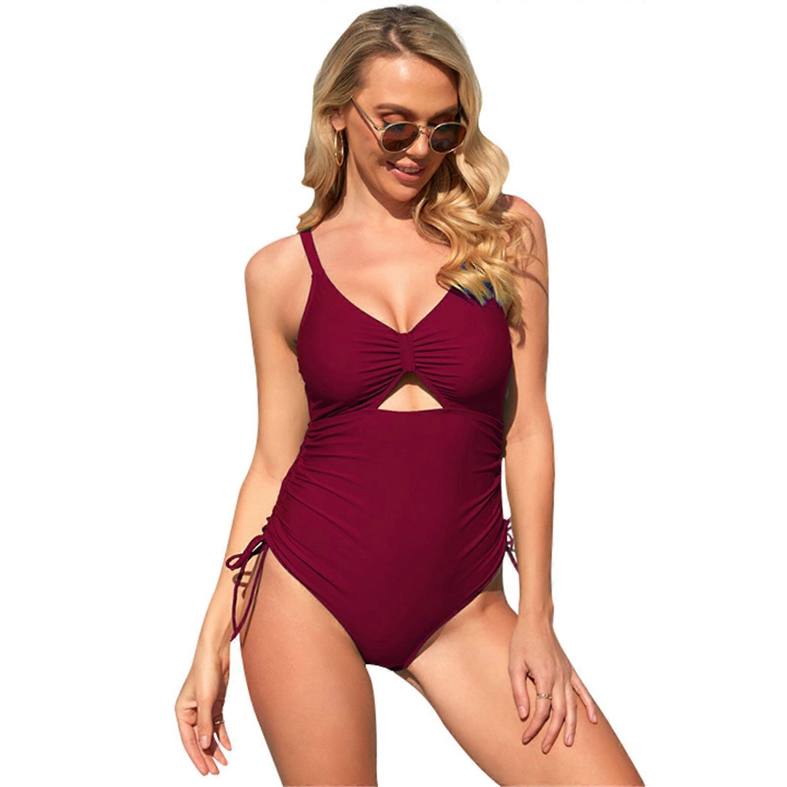 Womens Cutout Swimwear-One Piece Swimsuit Fashion Deep V-neck Bathing Suit Tummy Control Bikinis for Tropical Vacations Claret XL