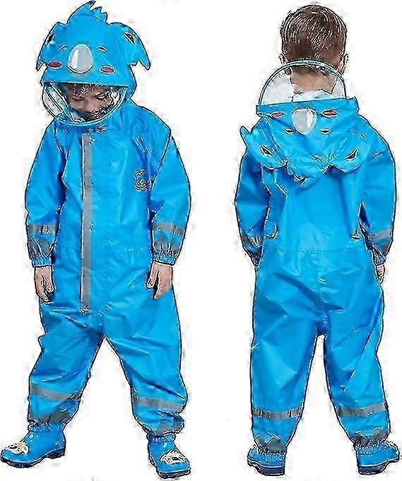 Children's waterproof clothing, one-piece raincoat for boys and girls, lightweight, breathable and easy to dry (5-7 years old, blue) hwy